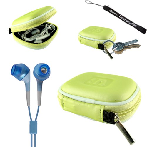 Earphone Case - Clamshell Style with Zipper Enclosure, Inner Pocket, and Durable Exterior! + Includes a 4-inch eBigValue Determination Hand Strap as a gift!! + Includes a Set of Hi-Fi Noise-Reducing Ear Buds Headphones for your MP3 Players 3.5mm stereo Jack Overview